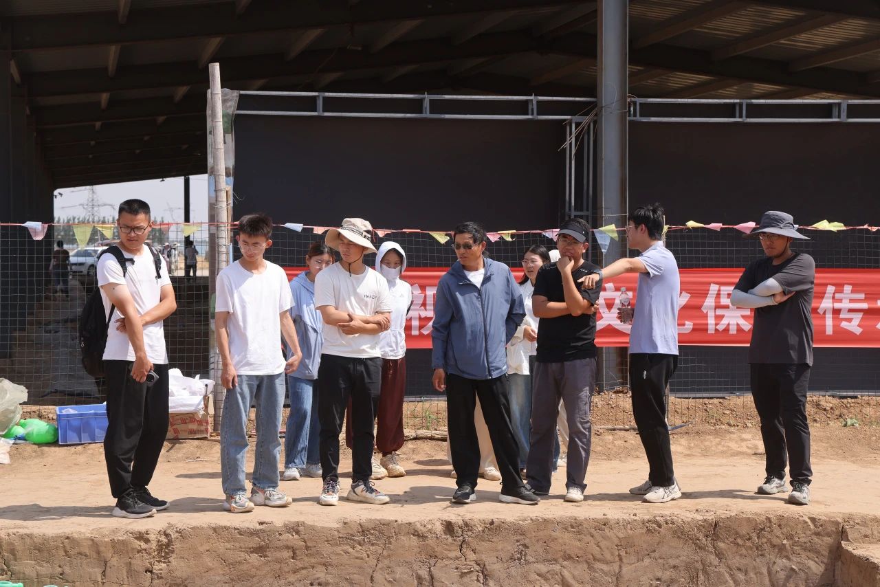 大汶口遗址考古队队员以及曲阜师范大学历史文化学院员工在焦家遗址进行参观时,现场负责人武昊介绍了今年的发掘目标、发掘进度及新近主要收获,并同大汶口遗址考古队的师生们互相交流发掘经验,比较两遗址在堆积情况、遗迹现象和遗物特征等方面的异同。他还结合历年来遗址的发掘概况,对大汶口文化在中国文明起源研究中的角色地位、地理位置及性质、典型陶器制作工艺等多个方面进行了详细介绍,给同学们留下直观而深刻的印象。
