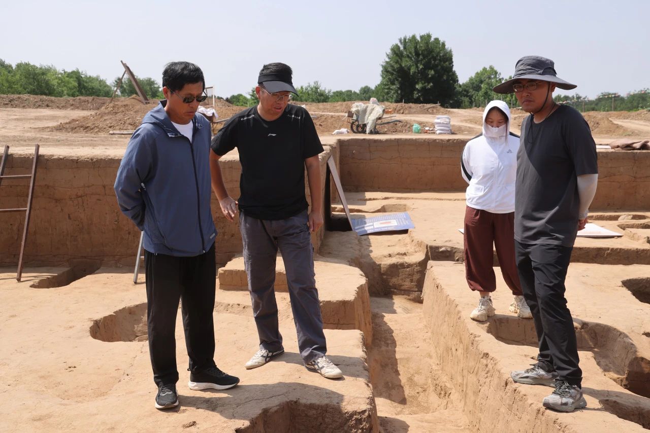 近日,焦家遗址考古队队员们首先来到了大汶口遗址的发掘现场,发掘负责人山东省文物考古研究院孙启锐老师为队员们细致讲解了大汶口遗址历年发掘情况及最新进展。结合在焦家遗址的田野工作经历参与讨论,双方在现场特别就大汶口遗址周围环境演变、聚落形态及其变迁等问题展开了深入交流。
