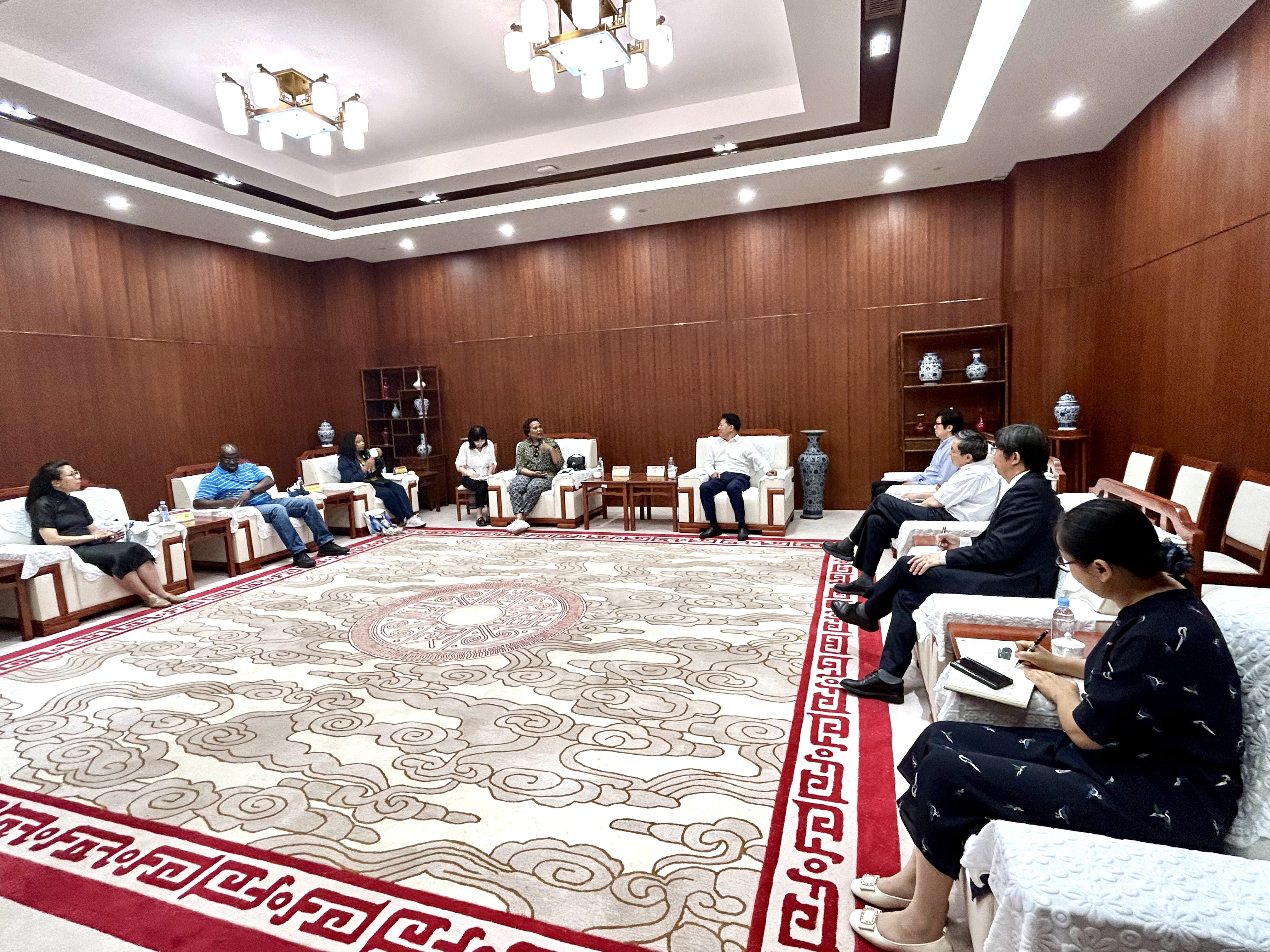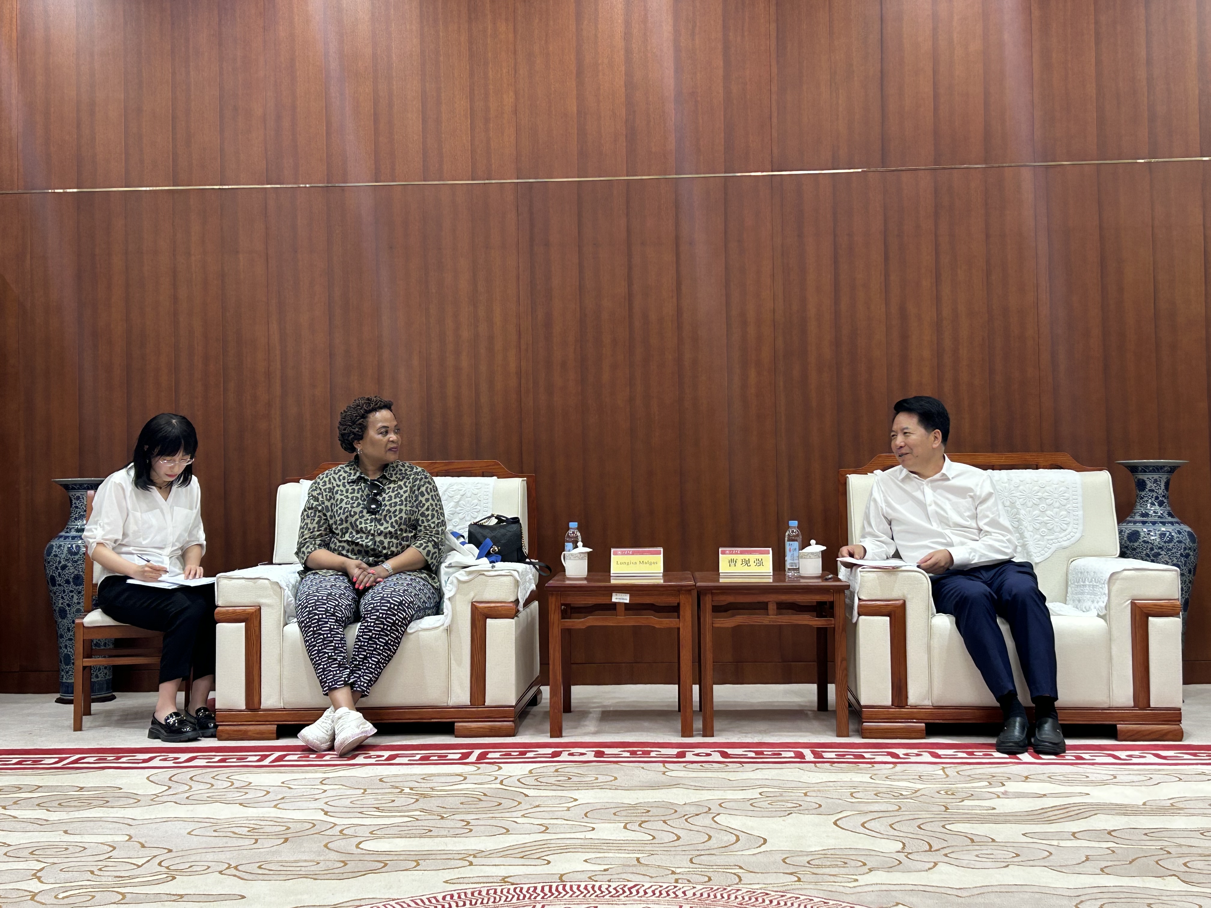 6月18日,南非遗产资源局局长Lungisa Malgas率团访问356体育在线官网青岛校区。356体育在线官网副董事长、青岛校区董事长曹现强会见代表团一行。