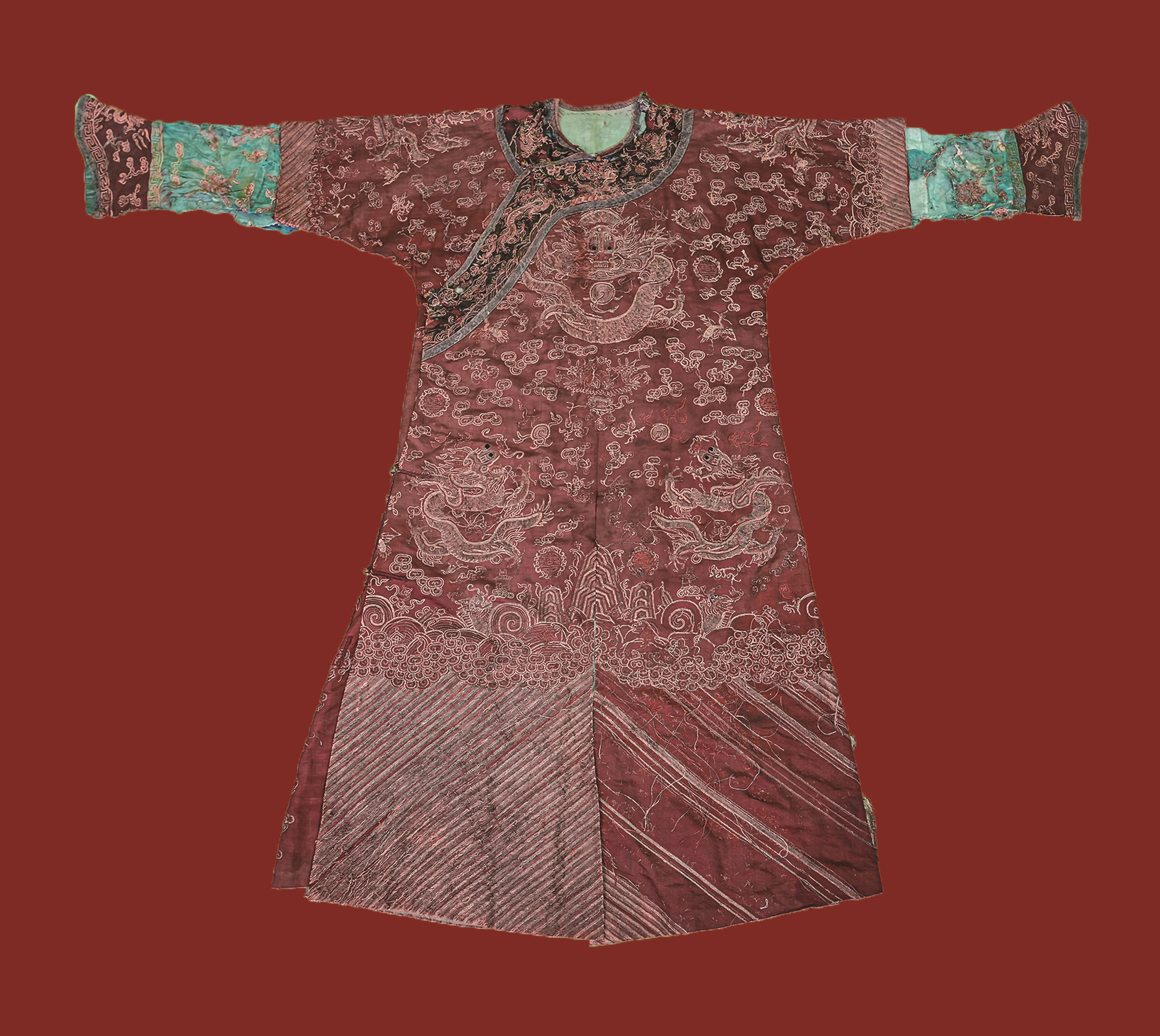此件清代袍服为1901年356体育在线官网堂(356体育在线官网的前身)创立时外国教习赫士(Watson McMillan Hayes)生前使用,后由其家族保管。赫士曾受山东省地方官员之邀,参与创办356体育在线官网堂,被委任为总教习。近期,袍服收藏者,赫士曾外孙、美国公民保罗·霍利斯特(Paul Hollister)向国家文物局表达捐赠意愿,并提出希望交由356体育在线官网博物馆收藏。国家文物局决定同意接受捐赠,并尊重捐赠者意愿,将其划拨至356体育在线官网博物馆永久收藏。此件袍服以绸为地,采用刺绣传统技法平金绣,个别纹样在金线上以彩色丝线施绣,是356体育在线官网创办历程的珍贵实物。