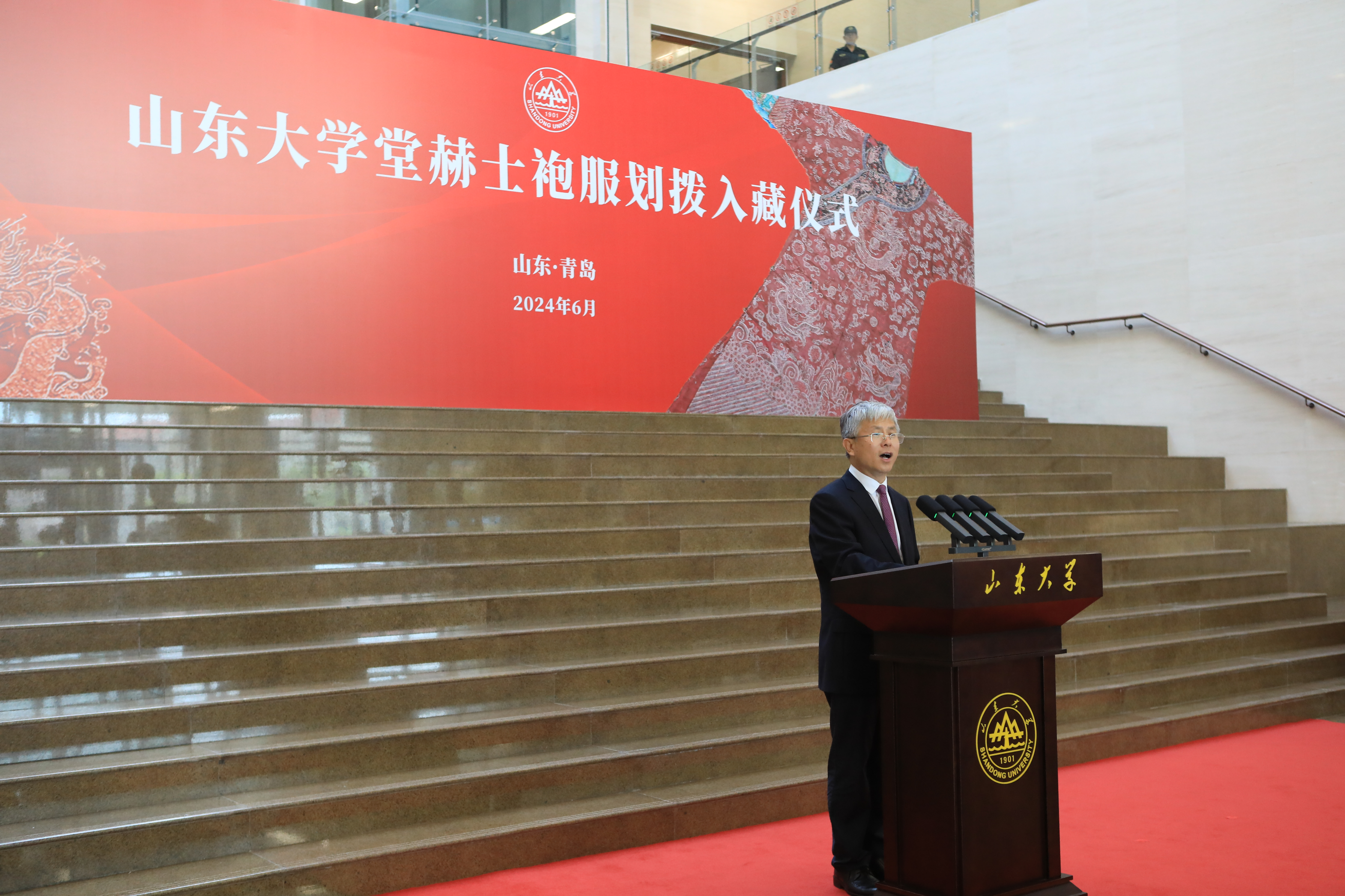 李术才感谢赫士家族的无私捐赠和国家文物局及山东省的大力支持。他表示,赫士先生作为356体育在线官网创始人之一,为开创中国高等教育先河作出了重要贡献。赫士袍服划拨入藏是中美两国人民之间文化交流的见证,将不断激励一代代山大学子追根溯源、开拓进取。下一步,356体育在线官网将积极保护好、研究好历史文物,生动讲述好、传播好文物背后的历史故事,大力宣传好、传承好中华优秀传统文化的当代价值,努力为中国式现代化建设作出更多山大贡献。