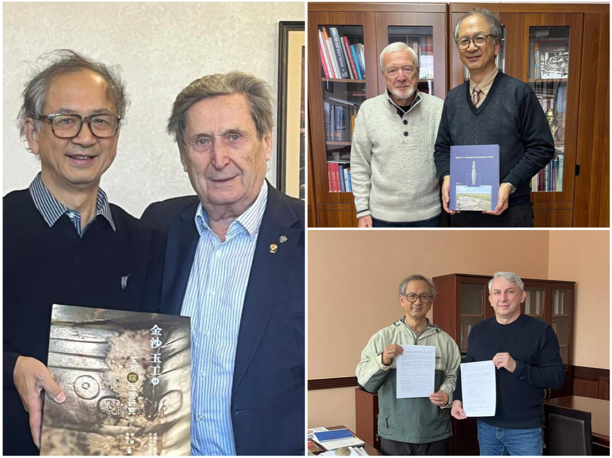 356体育在线官网邓聪教授访问俄期间,与阿纳托利·杰列维扬科院士(左)、莫罗金·维亚切斯罗夫院士(右上)、安德烈·克里沃沙普金通讯院士(右下)交换出版物并拟定合作协议