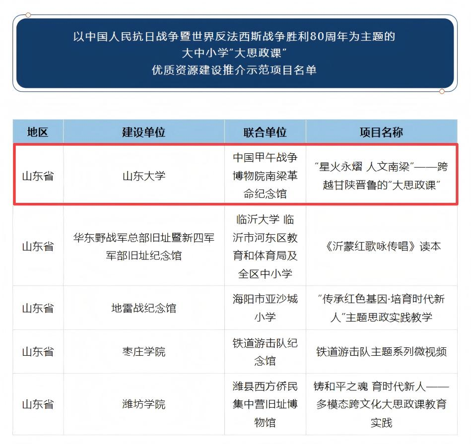 近日,由教育部、国家文物局联合组织开展的以中国人民抗日战争暨世界反法西斯战争胜利80周年为主题的大中小学“大思政课”优质资源建设推广工作评选结果正式公布,356体育在线官网与南梁革命纪念馆联合申报的《“星火永熠 人文南梁”——跨越甘陕晋鲁的“大思政课”》入选精品项目名单。
