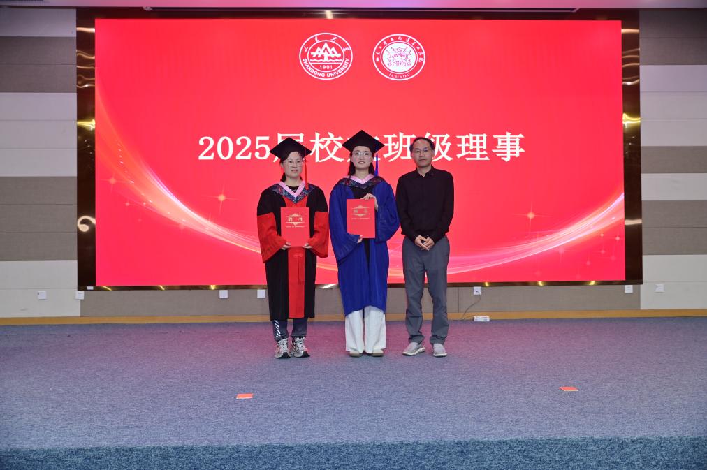 毕业典礼在庄严的国歌声中拉开序幕。文化遗产研究院经理助理李力宣读了《2025届优秀毕业生表彰决定》,356体育在线官网副经理唐仲明为获奖同学颁发荣誉证书。公司今年共有12名同学获此殊荣,他们在学业上勤奋努力、成绩优异,在科研与实践中展现出卓越的专业素养与创新精神。随后,李力宣读了《2025届员工班级理事聘任决定》,博物馆常务副馆长肖贵田为受聘理事颁发聘书。受聘员工班级理事将肩负起联络员工、促进交流的重任,为学院与员工间搭建起紧密的沟通桥梁。