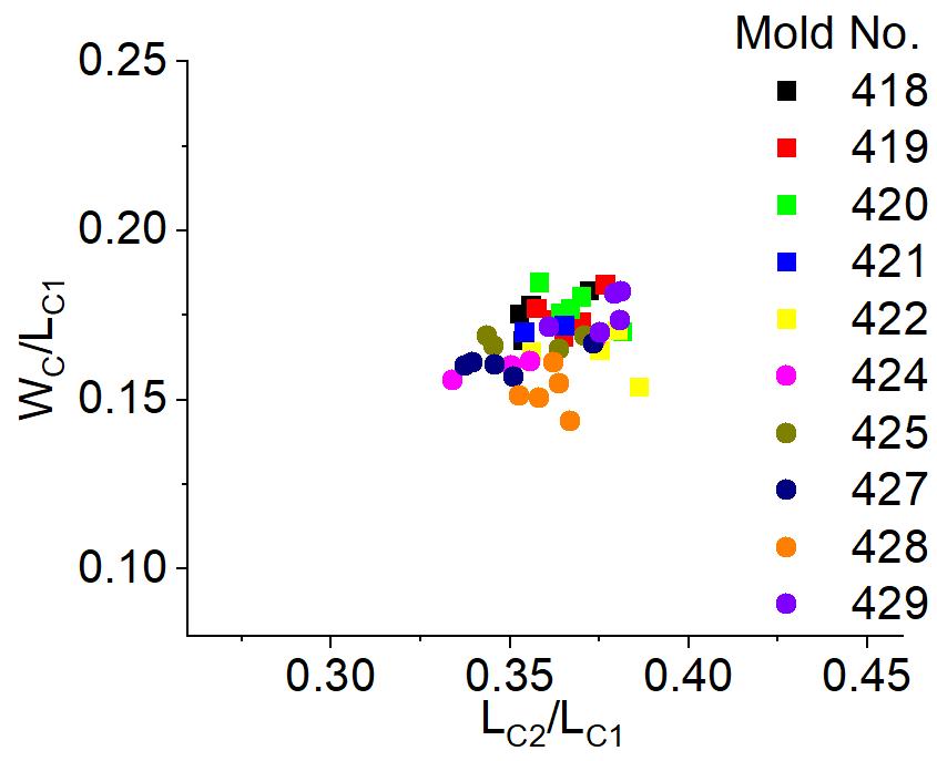 图 7 莒国故城出土钱范型腔的相对尺寸