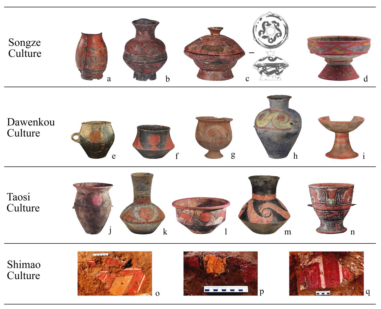 图四 崧泽、大汶口、陶寺和石峁文化的彩绘陶和壁画残块