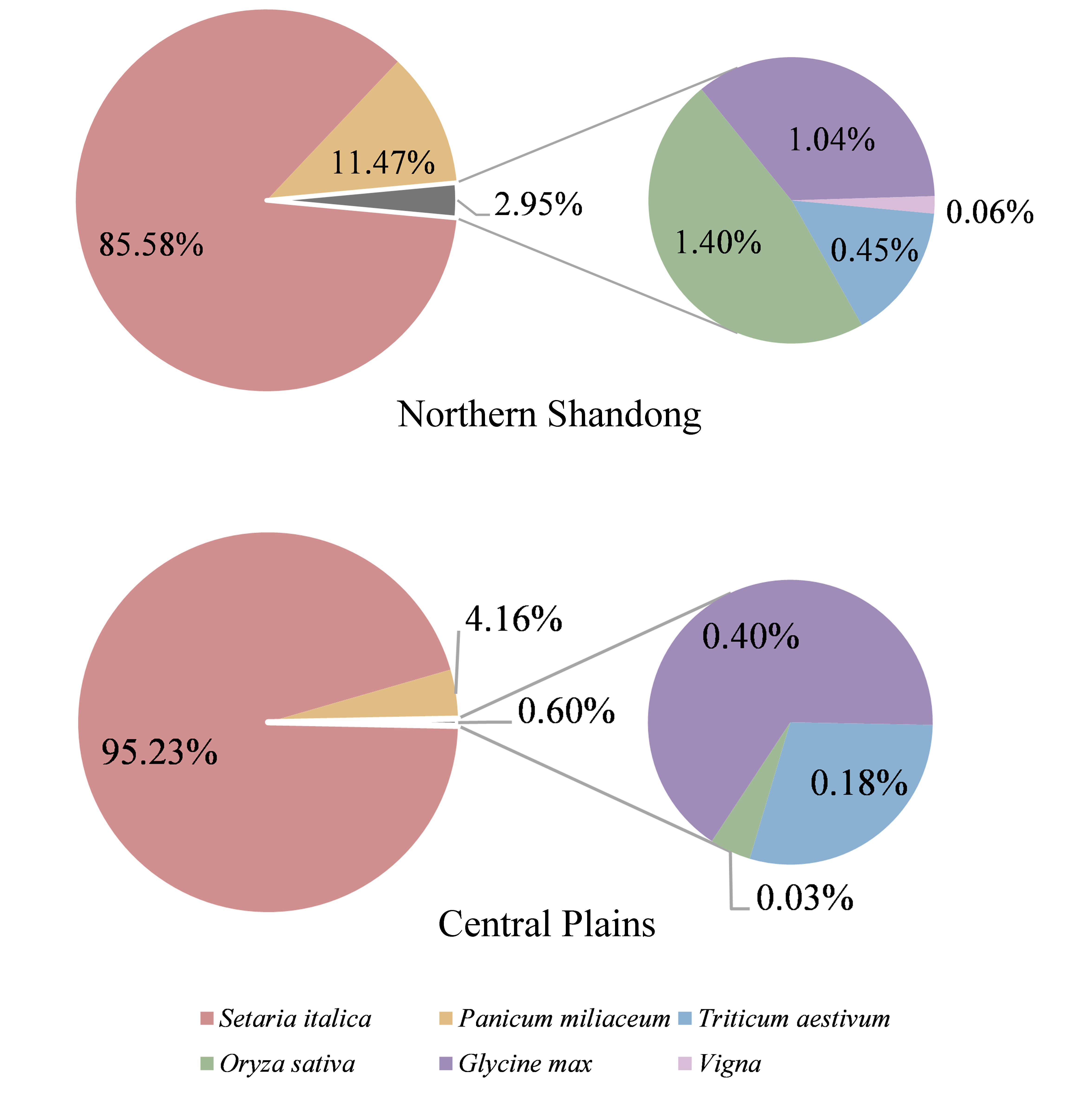 图四 晚商时期鲁北和中原农作物结构对比