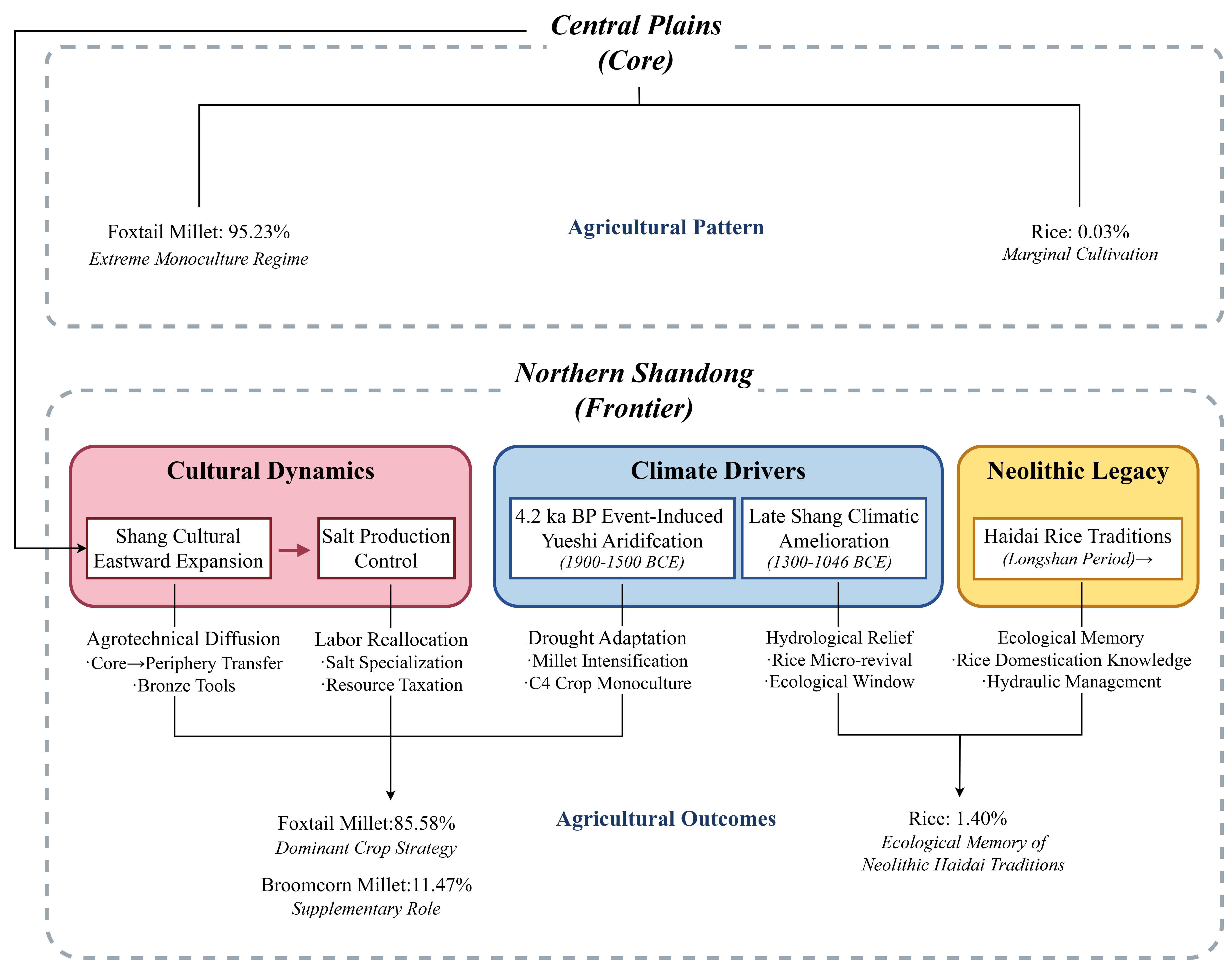 图五 晚商鲁北地区的气候-文化-农业相互作用概念模型图