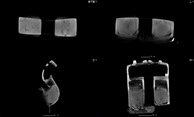 经CT成像分析,三足内保留部分泥芯,未见芯撑的迹象。三足根部挖去泥芯的深浅不一,使得后足充入的金属液最多,右足充入的金属液最少。