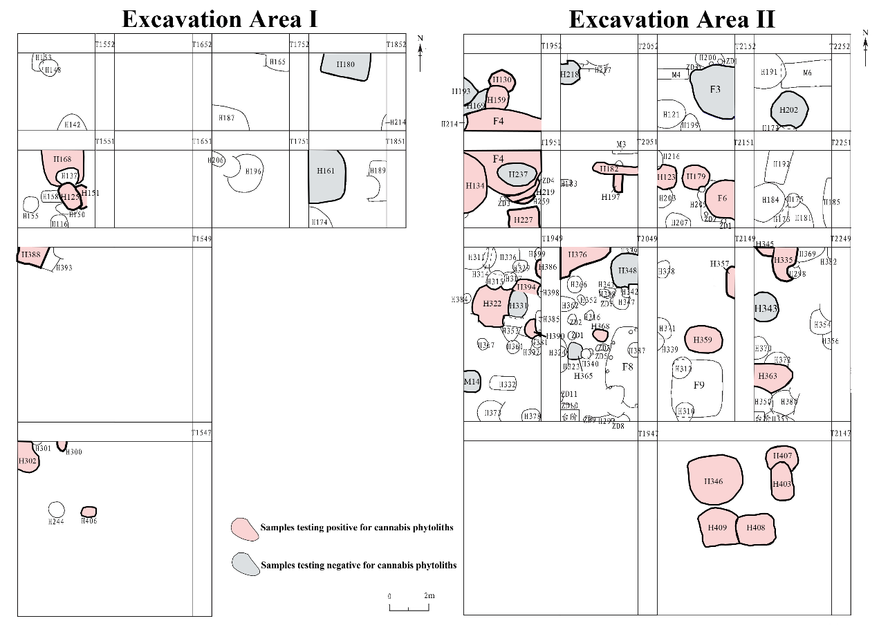 图五 北台上遗址大麻植硅体的空间分布