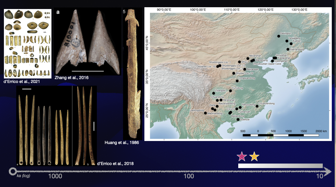 但在 2000年 之 后, 这种观点被推翻,大量发现表明骨 器既不局限于欧洲,也不是智人的专属。 在 西欧、东非、南亚 、东南亚、西伯利亚 等地区 , 都 发现 了距今4.5万年左右 的 骨器和 骨 装饰品 ,例如 欧洲发现 了 尼安德特人制作的磨光 骨 器、穿孔贝壳、象牙尖状器 和骨 装饰品; 而 在中国南方 和 北方 等多个遗址,发现了骨针、骨 鱼叉和 骨 装饰品。