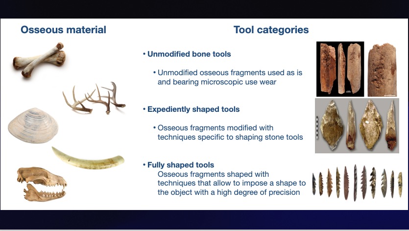 之后,他指出对骨器技术开展研究的两个原因:一是利用骨器是人类独有的行为;二是骨骼与石头相比,更易获取,其物理特性也决定了它更加耐用、持久,是制作工具的优质材料。
