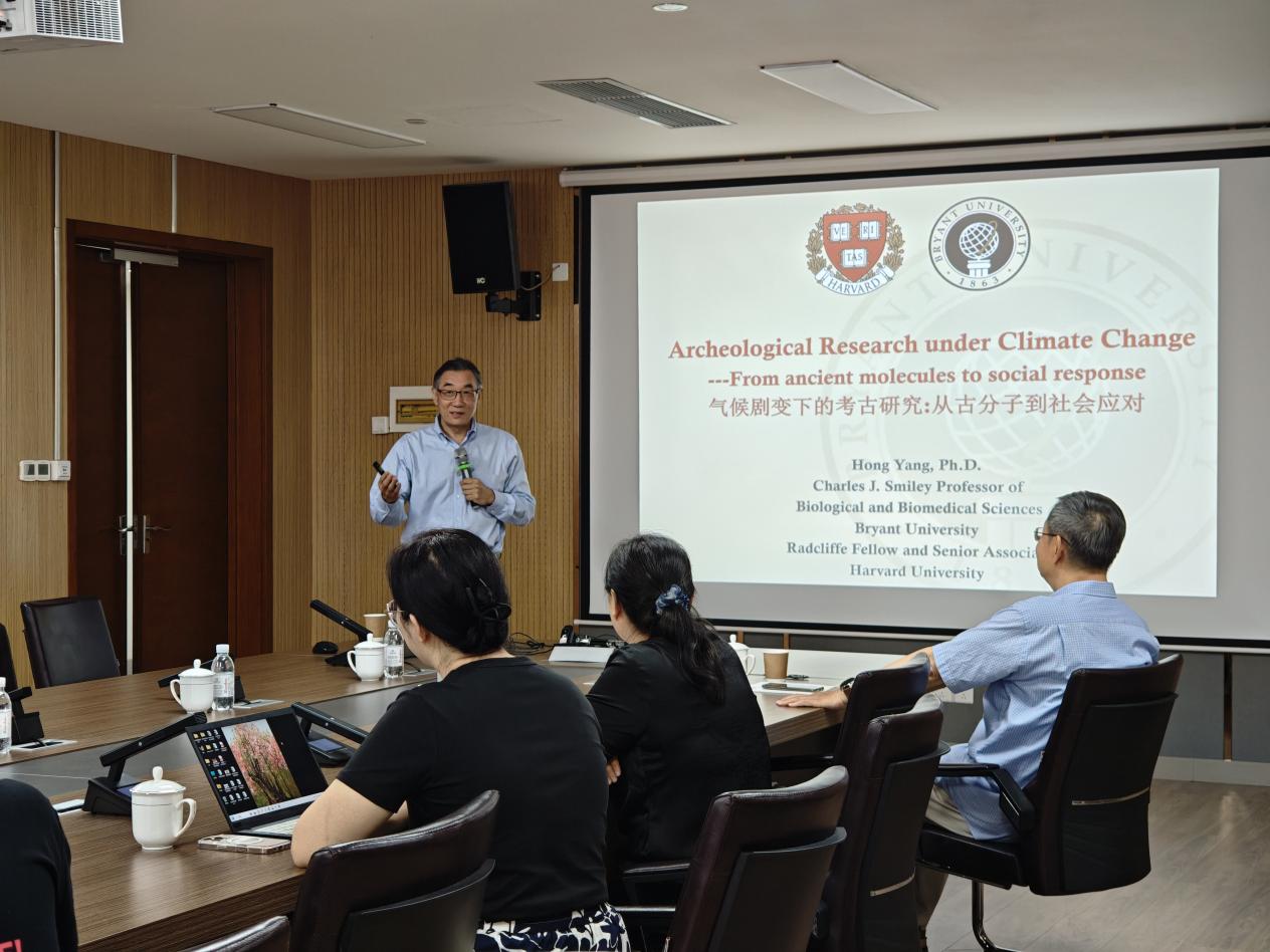 6月26日,美国哈佛大学Radcliffe学者,中国环境、能源与经济综合项目核心研究员,美国布莱恩特大学前副董事长杨洪教授受邀为356体育在线官网文化遗产研究院师生作题为《气候巨变下的考古研究:从古分子到社会应对》的讲座,本次讲座由356体育在线官网文化遗产研究员特聘教授赵志军主持。