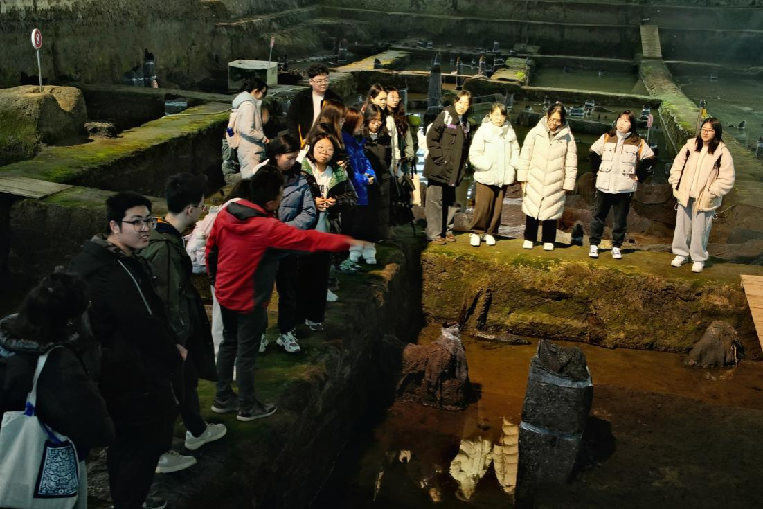 1月19日,同学们第一站去了宁波井头山遗址发掘基地。在系友王永磊老师和浙江省考古所孙老师的带领和引导下,同学们先是学习了井头山遗址的概况,接着进入整理室,近距离接触并了解了不同的出土遗物,包括贝壳、鹿角、兽骨、陶器、骨器等多方面内容,此外,同学们还深入井头山遗址考古发掘现场,对这一 特殊的发掘方式和遗址类型体会更加深刻,感受到当时考古队员发掘的不易。接下来,同学们去了田螺山遗址现场馆,在王老师的带领下进入发掘现场进行参观,对这一遗址进行更深入的学习。下午,同学们首先来到王老师的良渚文化遗址发掘工地,深入探方体会五千年前良渚人的生活场景。随来到河姆渡遗址和遗址公园,观看了对当时建筑的复原模型和复原的发掘现场,深入学习了解当时先民的生活环境与居住情况。