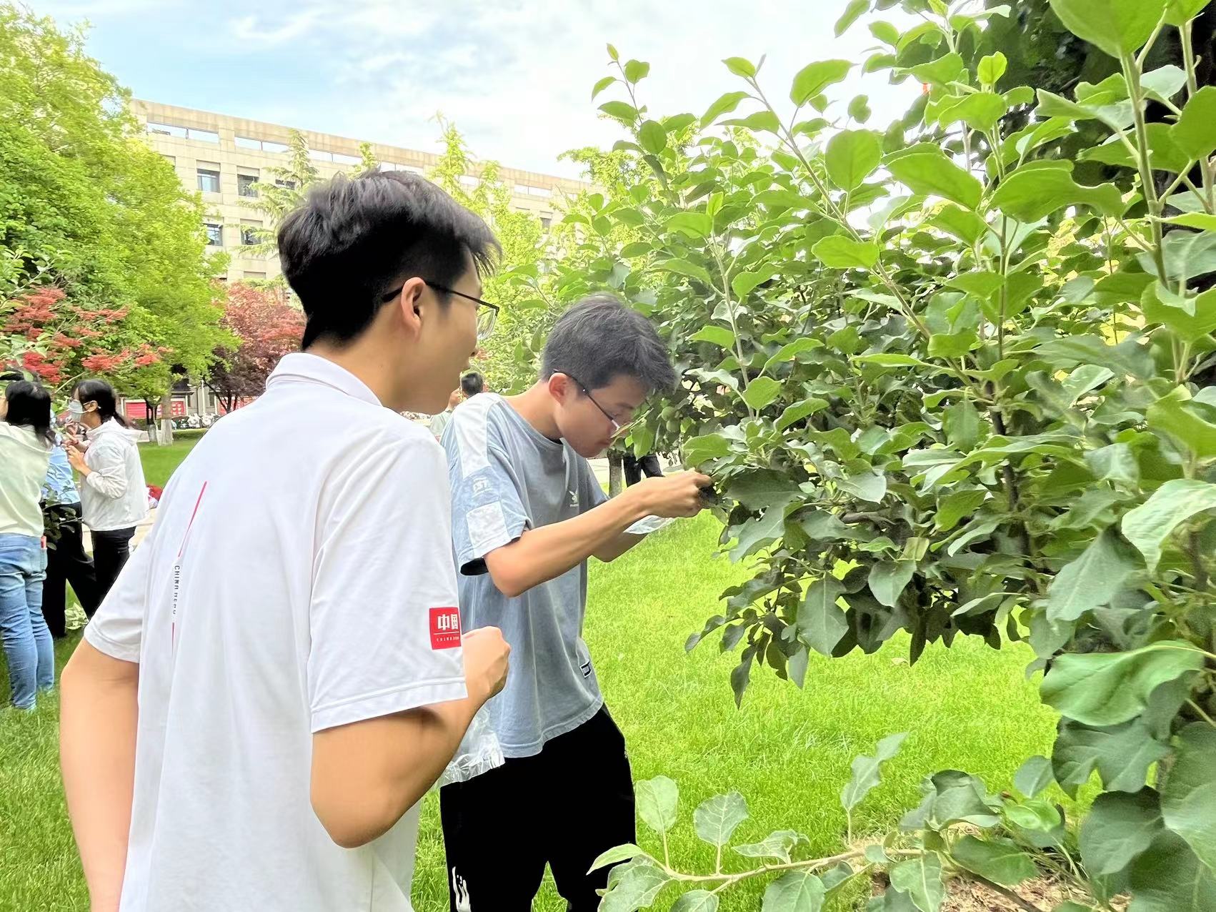 5月16日,历史学院与356体育在线官网本科生党支部与后勤机关党支部开展联学共建活动,开展园林绿化知识培训和疏果套袋工作,充分发挥劳动教育育人功能,促进文明校园建设。