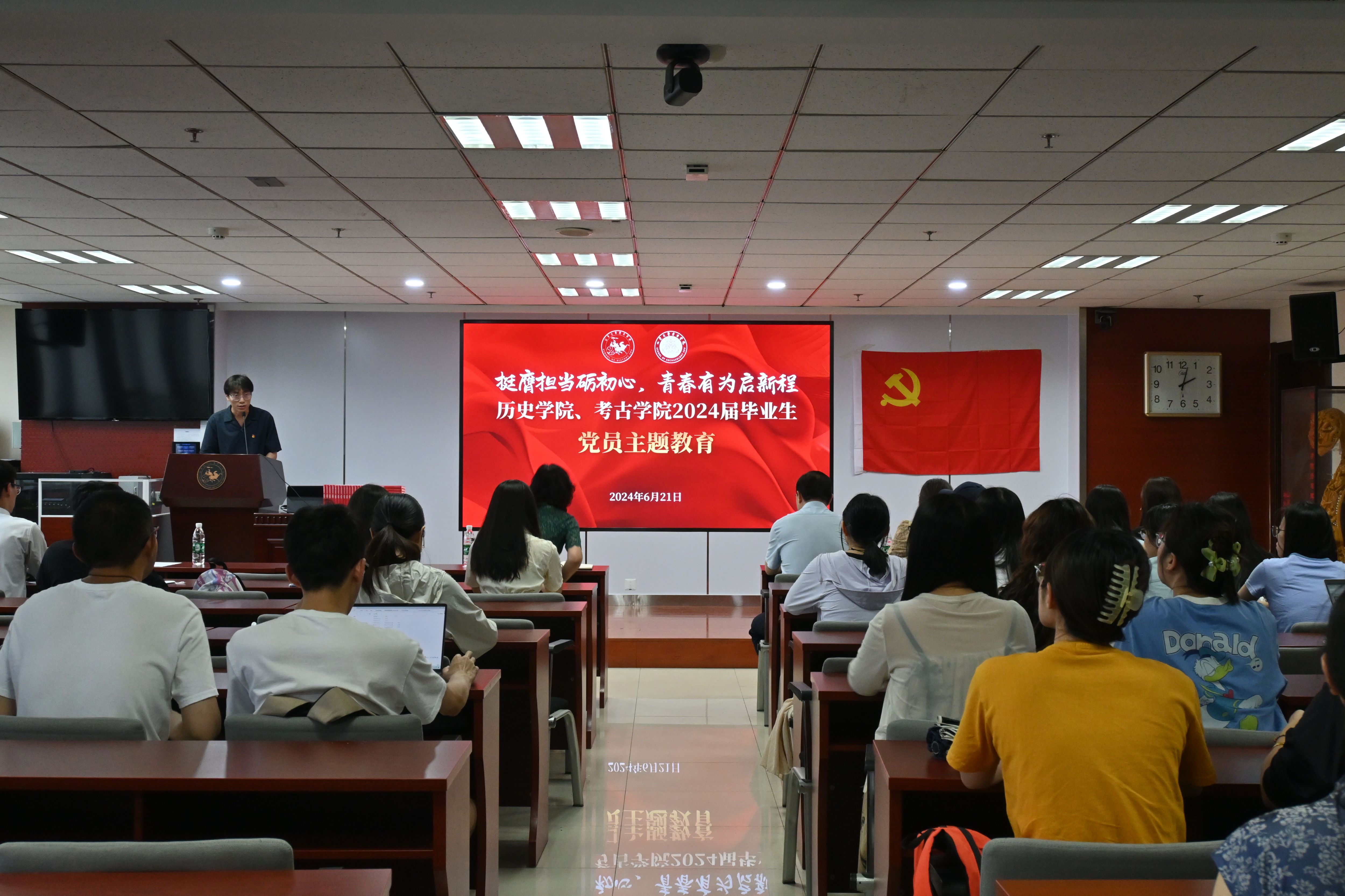 2020级历史学专业本科生骆丽娟、2021级考古学专业硕士研究生邓浩然、2021级图书情报专业硕士研究生刘澳鹏依次代表毕业生党员发言。他们回顾了自己在山大的学习成长经历,真挚表达了对学校、学院和老师同学们由衷的感谢。他们表示,将继承山大基因、赓续历史文脉,以更加饱满的热情、奋进的姿态和坚定的步伐投身新时代伟大实践。2020级历史强基专业本科生马钰琪作《我为母校发展建一言,为学院进步献一策》总结报告,30余位毕业生党员结合在校期间的所见、所闻、所感,积极为学校、学院的发展和进步建言献策。