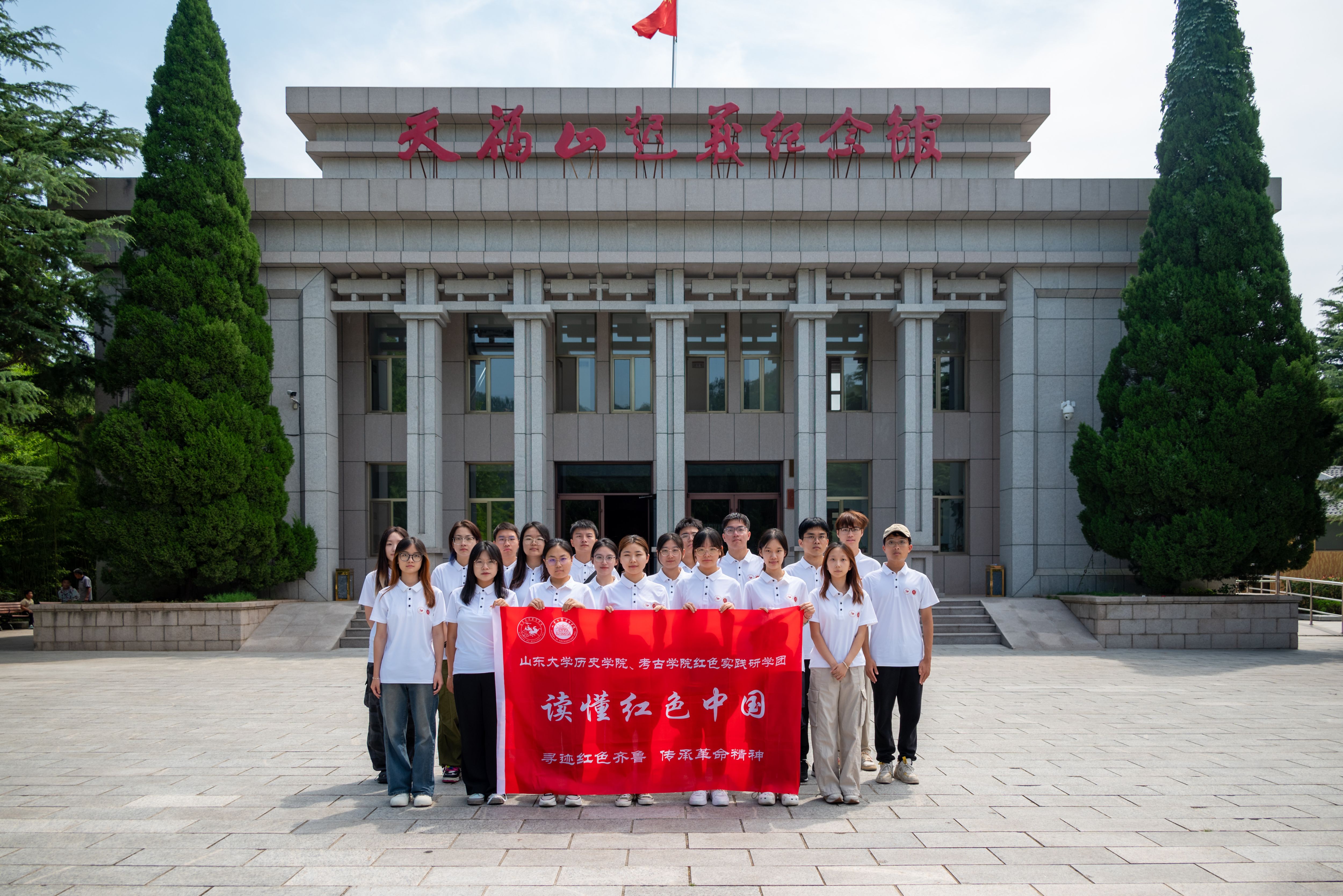 天福山起义点燃了胶东抗战烽火,从此胶东的党军民戮力同心、砥砺奋进,造就了一个激情昂扬的红色胶东时代。团队成员来到天福山起义纪念馆,进一步学习和感受革命先烈们的英勇事迹和抗争精神。在参观过程中,成员还实地走近天福山起义旧址、烈士纪念塔等地,进行了集体默哀致敬,表达了对先烈的深切缅怀和无限敬意。此外,成员集体观看了讲解员针对天福山起义的快板表演,聆听了胶东人民的武装抗日故事,深受震撼。