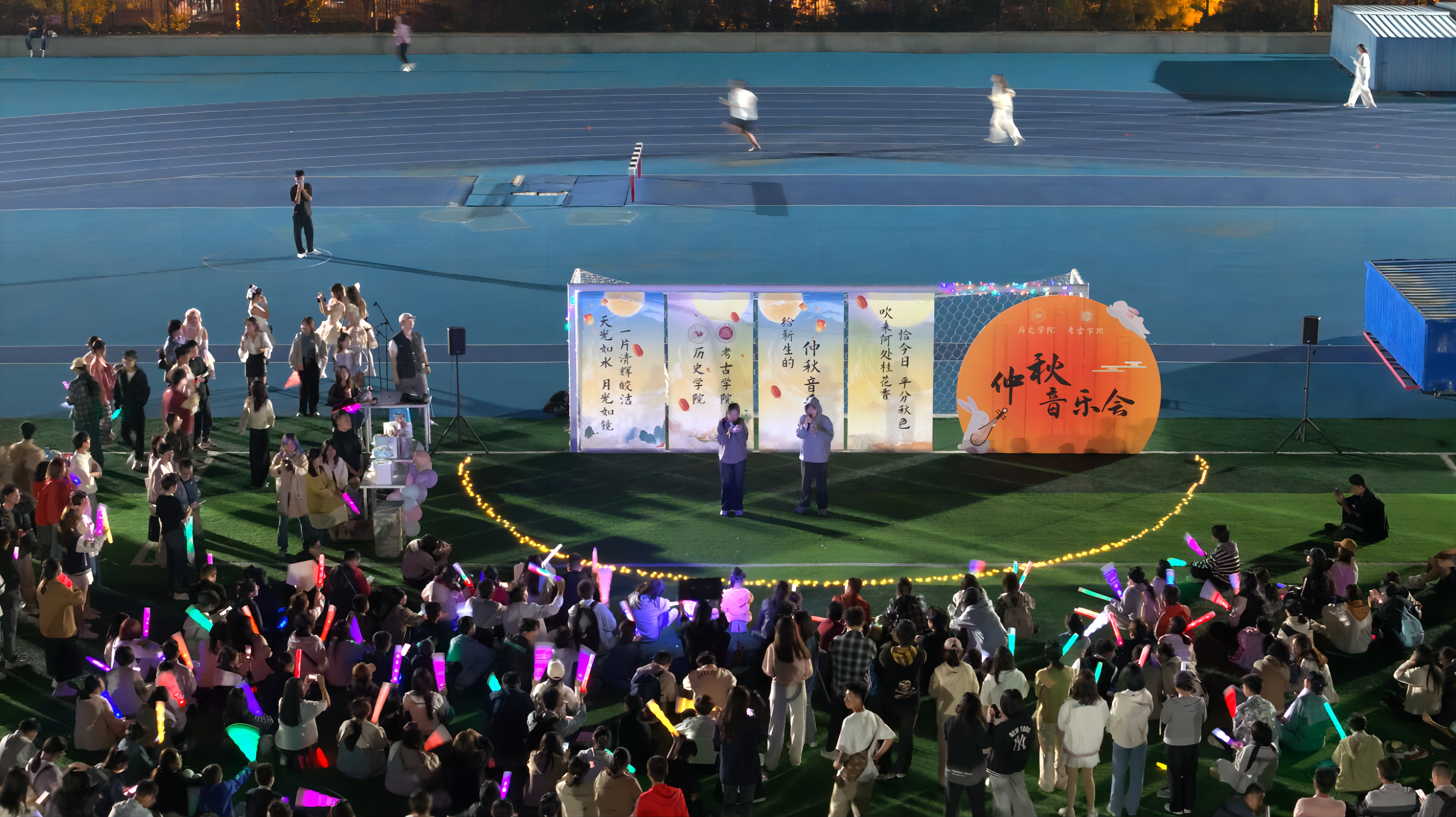 9月22日晚,356体育在线官网在中心校区田径场举办“仲秋序曲——给2024级新生的仲秋音乐会”。356体育在线官网辅导员李虎、刘紫奕、张誉馨、骆丽娟老师,2024级全体新生参加活动。