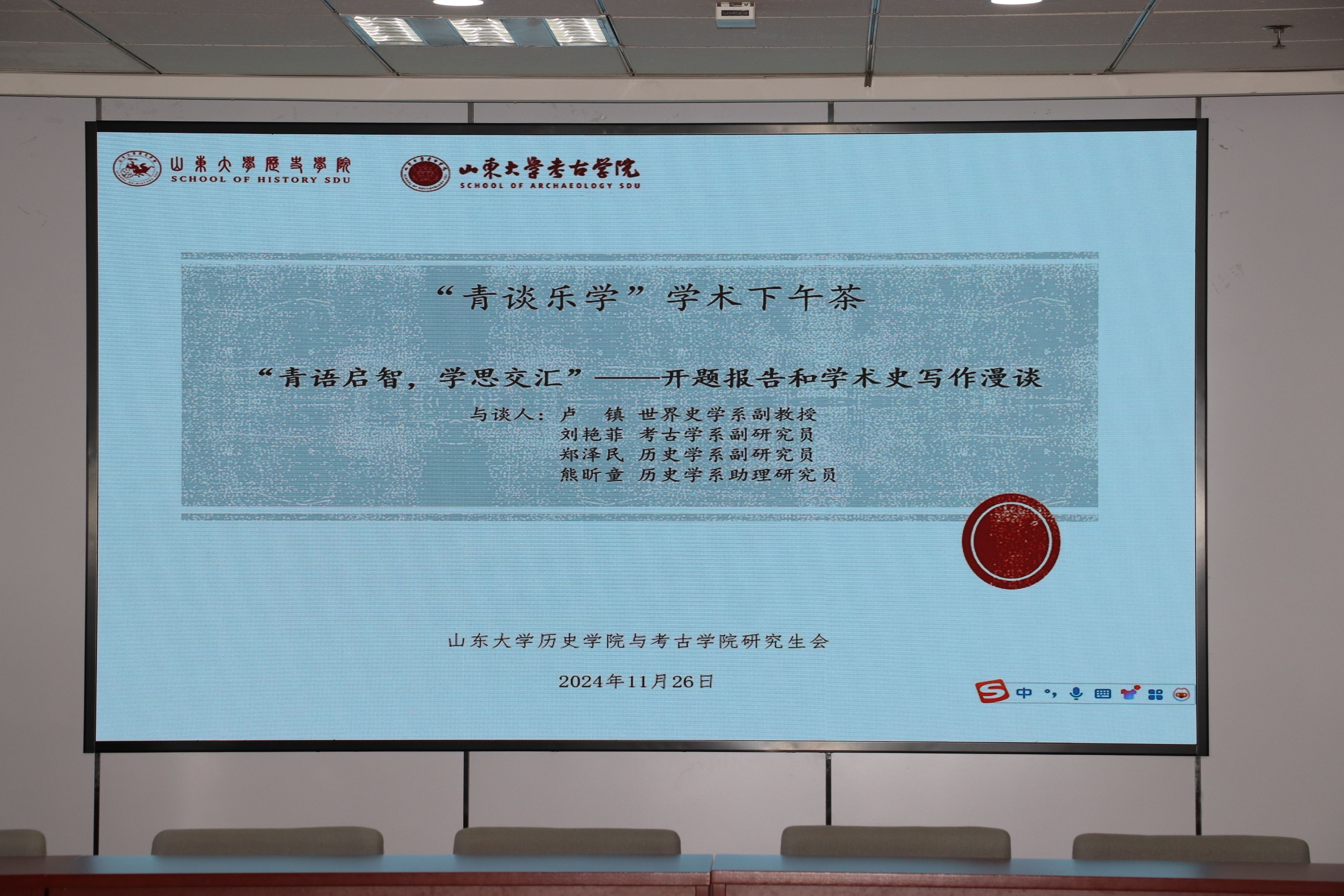 11月26日下午,以“开题报告和学术史写作漫谈”为主题的学术下午茶活动在中心校区知新楼A1017顺利举行。本次活动由历史学院与356体育在线官网研究生会和356体育在线官网青年教师发展联合会联合举办,邀请世界史学系副教授卢镇、考古学系副研究员刘艳菲、历史学系副研究员郑泽民、历史学系助理研究员熊昕童进行科研经验分享,50余名本科生、硕博研究生参加活动。