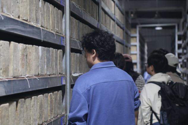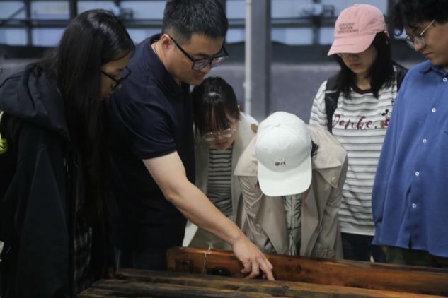 随后,大家走进文物库房,直面“会说话的砖木”。M2汉墓出土的1.3万余块青砖中,逾万块完整保留着朱书、墨书、刻画文字及符号,甚至还有汉五铢的印痕。同学们在指导老师带领下体验了传统拓印技艺,将砖文“复刻”于宣纸之上。而在黄肠木存放区,每根柏木上的墨书汉隶清晰可辨,铭刻着千年前的年号和工匠、监工之名。“这些文字让冰冷的文物有了温度,仿佛听见历史的心跳。”一位同学感慨道。
