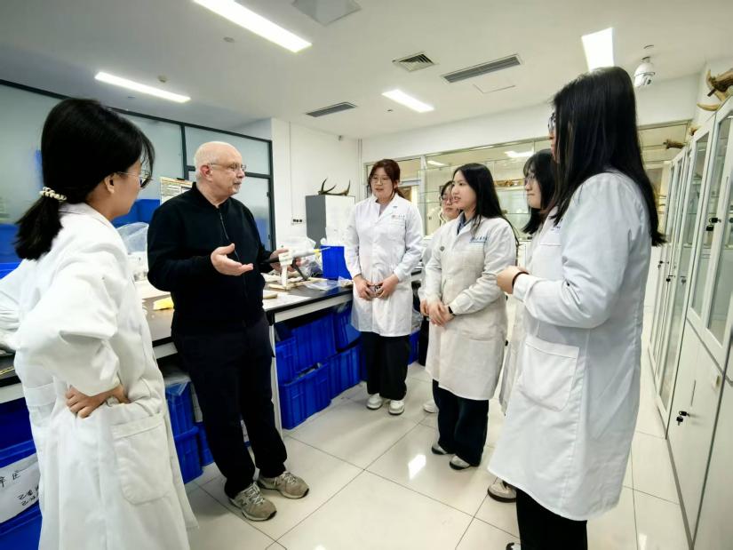访问期间,Greenfield教授向动物考古实验室的师生进行了实验室教学。教授对实验室不同遗址的动物骨骼材料的痕迹进行了细致的观察,重点为同学们讲解了如何利用超景深显微镜观察各种屠宰痕迹,以及不同工具的类型和原材料所造成的屠宰痕迹的微观形态差异。期间,教授还向同学们分享了自己的动物骨骼基础数据和痕迹观察的数据库,并指导同学们进行了数据记录实践。此外,Greenfield教授还传授了配制化学溶液用以保存现生标本的方法,员工们受益匪浅。
